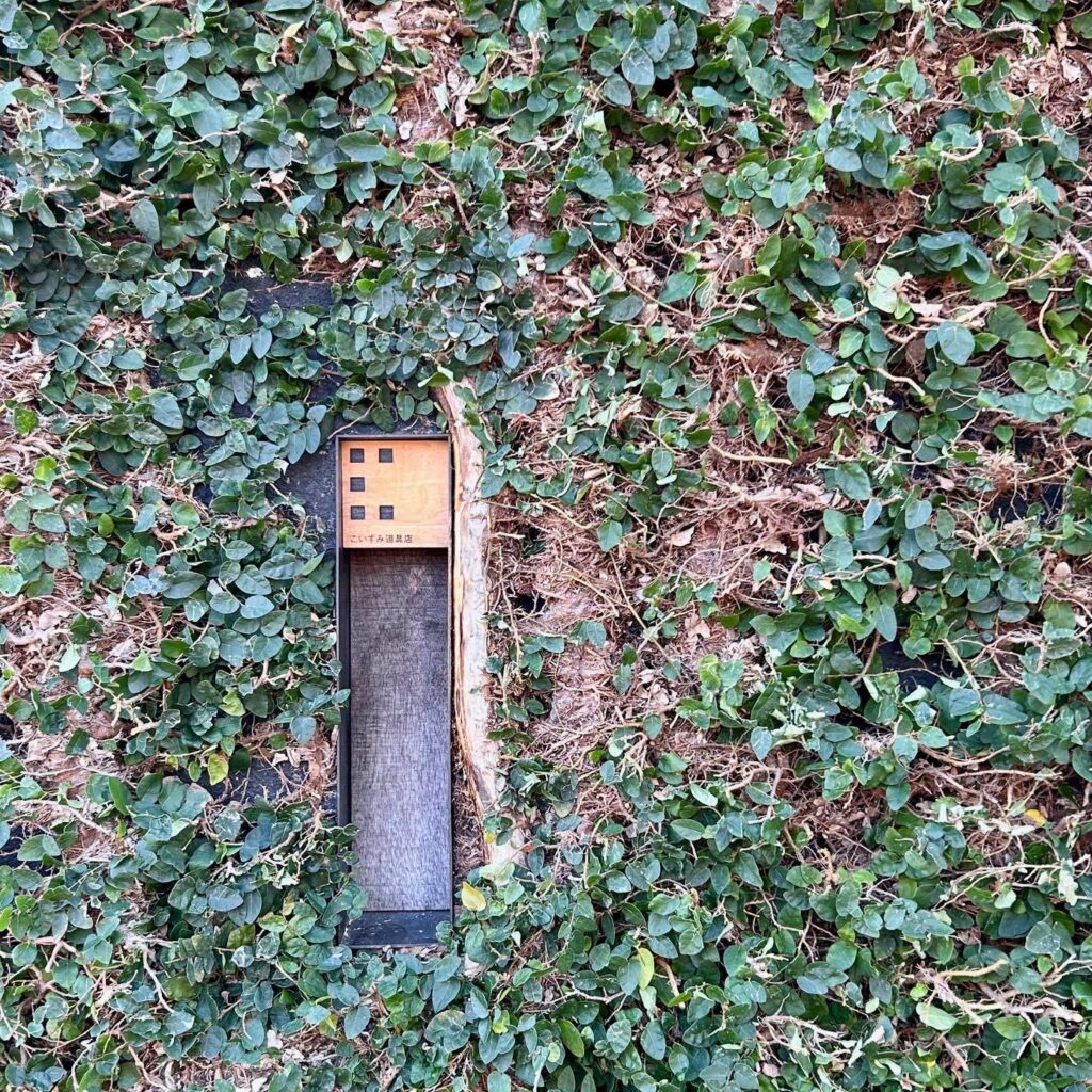 こいずみ道具店では毎年恒例の外壁の蔦プミラの剪定。このプミラは12年前のオープン時に一株植えただけでしたが、今では樹木のように育っています。剪定はスタッフ全員で半日がかり。もじゃもじゃの姿が角刈りのように綺麗に仕上がりました。ついでにポストの上の表札も削り直してスッキリと。