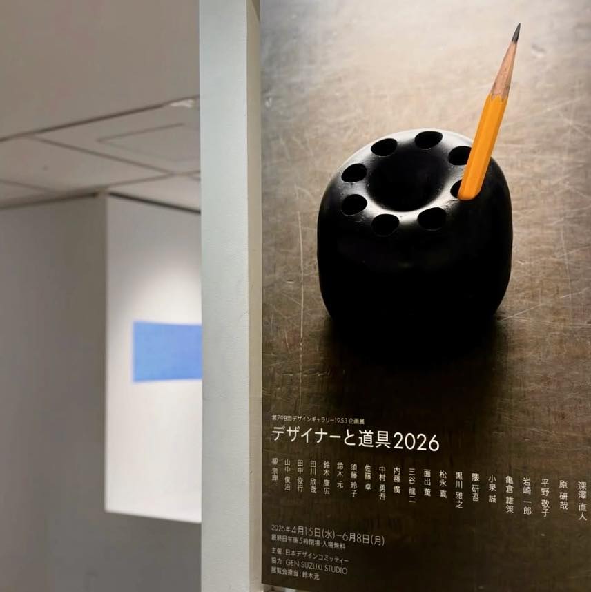 小泉が所属する日本デザインコミッティーのメンバーが日頃の仕事やプライベートで実際に愛用している思考表現のための道具を集めた「デザイナーと道具2026」がデザインギャラリー1953で始まりました。小泉は解像度の低い手書きが肝心という道具を出品しています。会場ではメンバー本人が実際に使い込んでいる道具の現物とともに、そこから生み出された筆跡や思考の痕跡を併せて展示します。